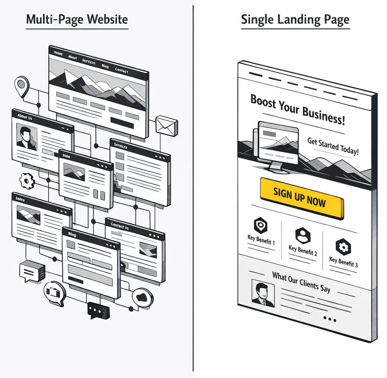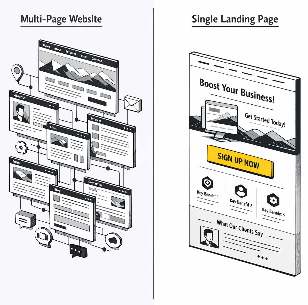 Landing page design focuses on clarity, message alignment, and conversion rather than general navigation or multiple content paths.